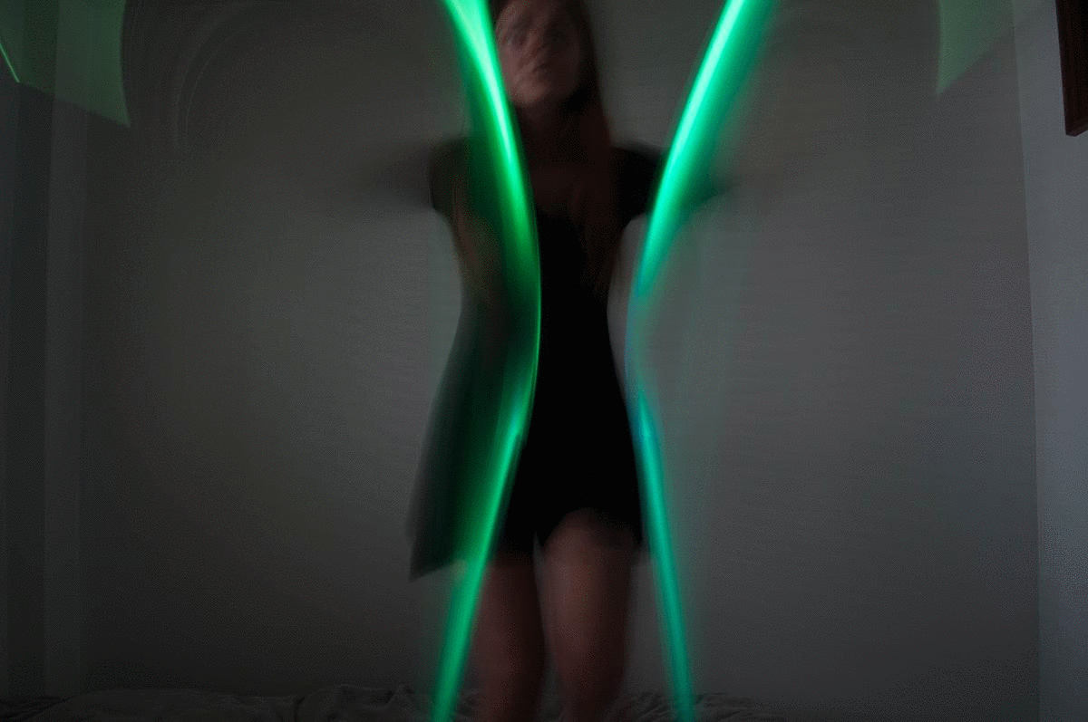 Fiber optic plastic light fascinates me the most. It carries light all the way to its delicate edges, allowing me to create soft, brush-like strokes in my abstract lightpainting sessions.